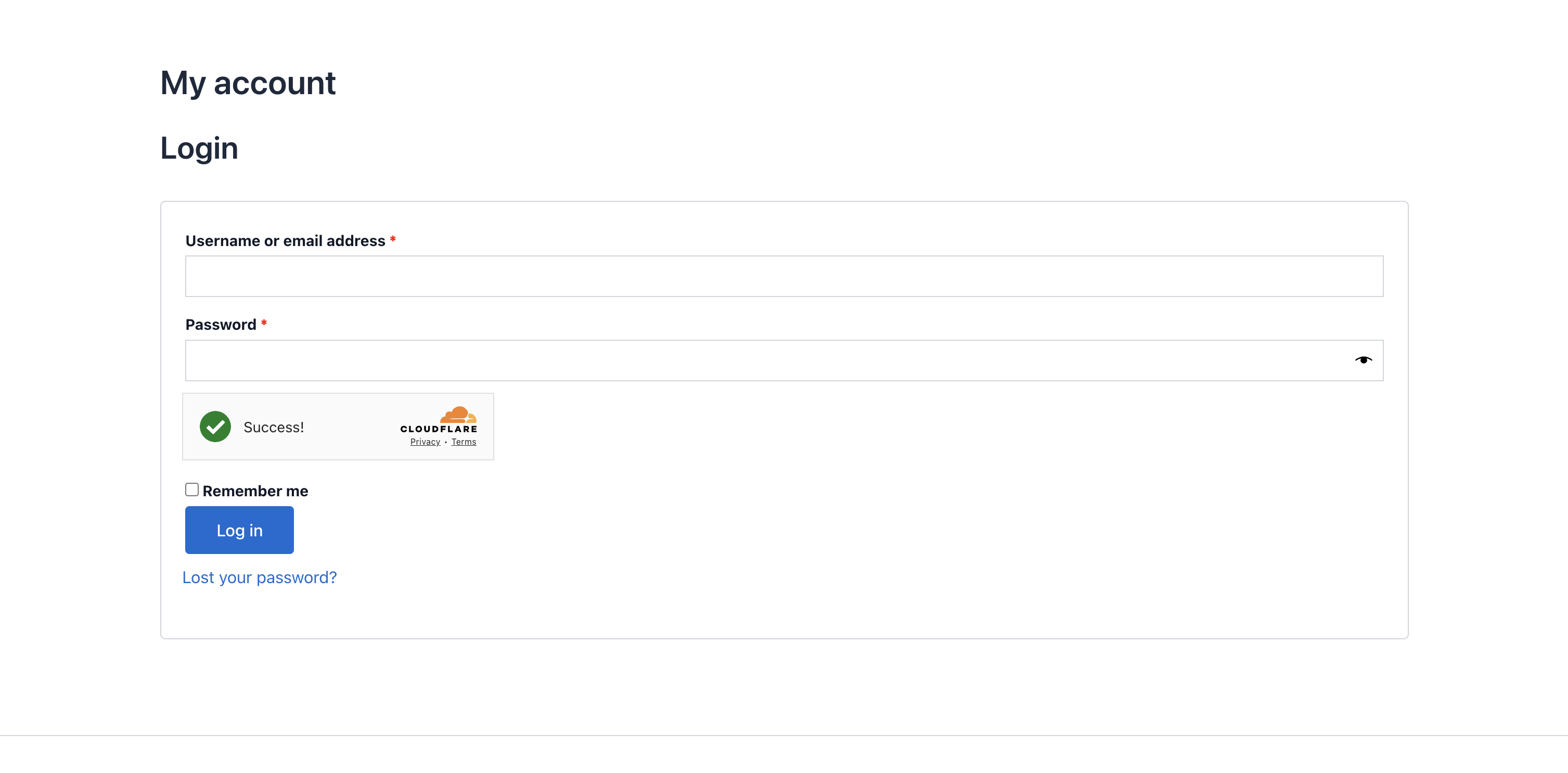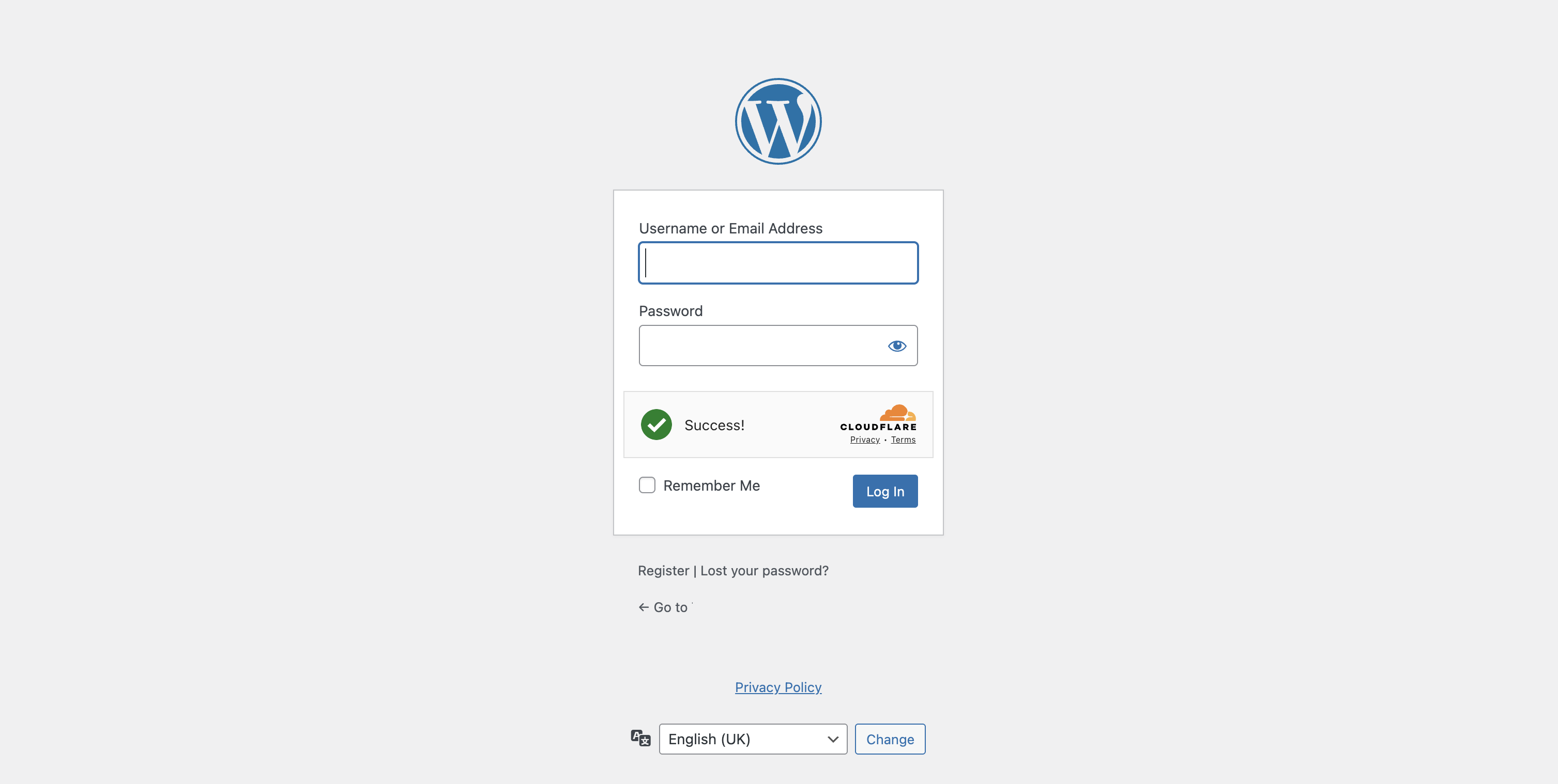 WordPress login form protected by Cloudflare Turnstile (clean placement, no clutter).