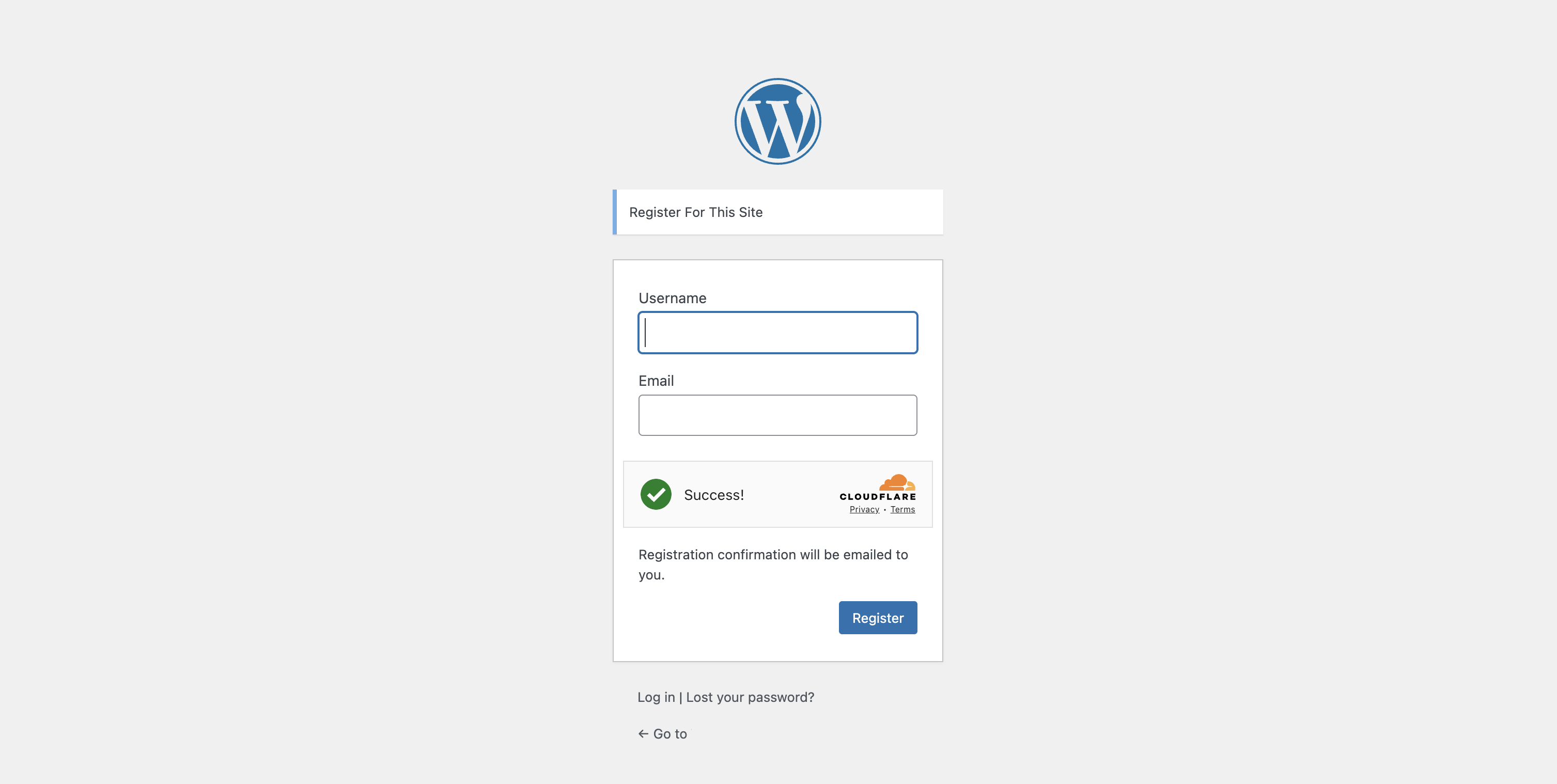 WordPress registration form protected (anti-spam for new accounts).