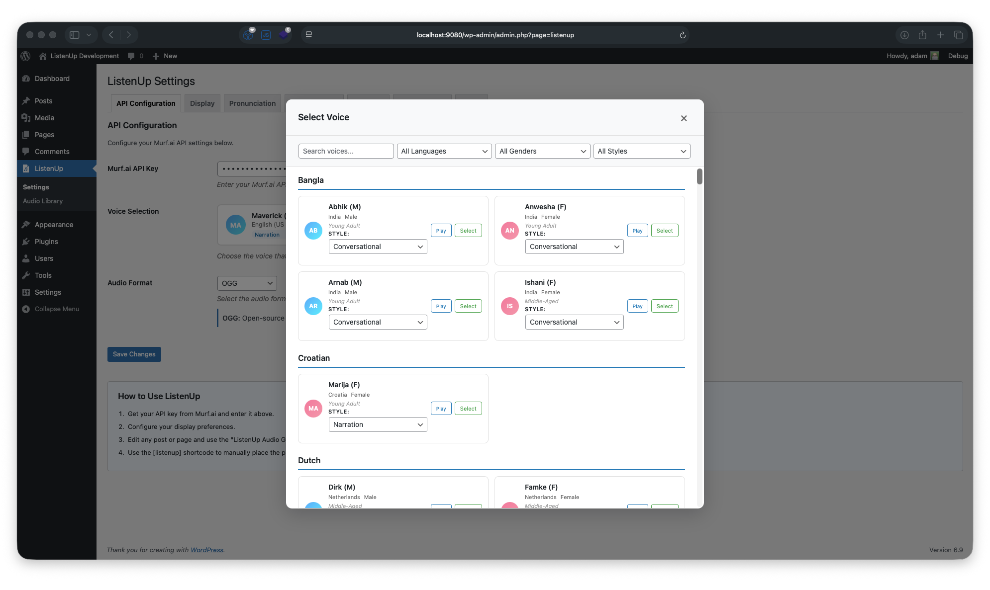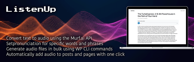 ListenUp is a powerful WordPress plugin that adds text-to-speech functionality to your posts and pages. With just a few clicks, you can generate high-quality audio versions of your content using Murf.ai’s advanced AI voices.