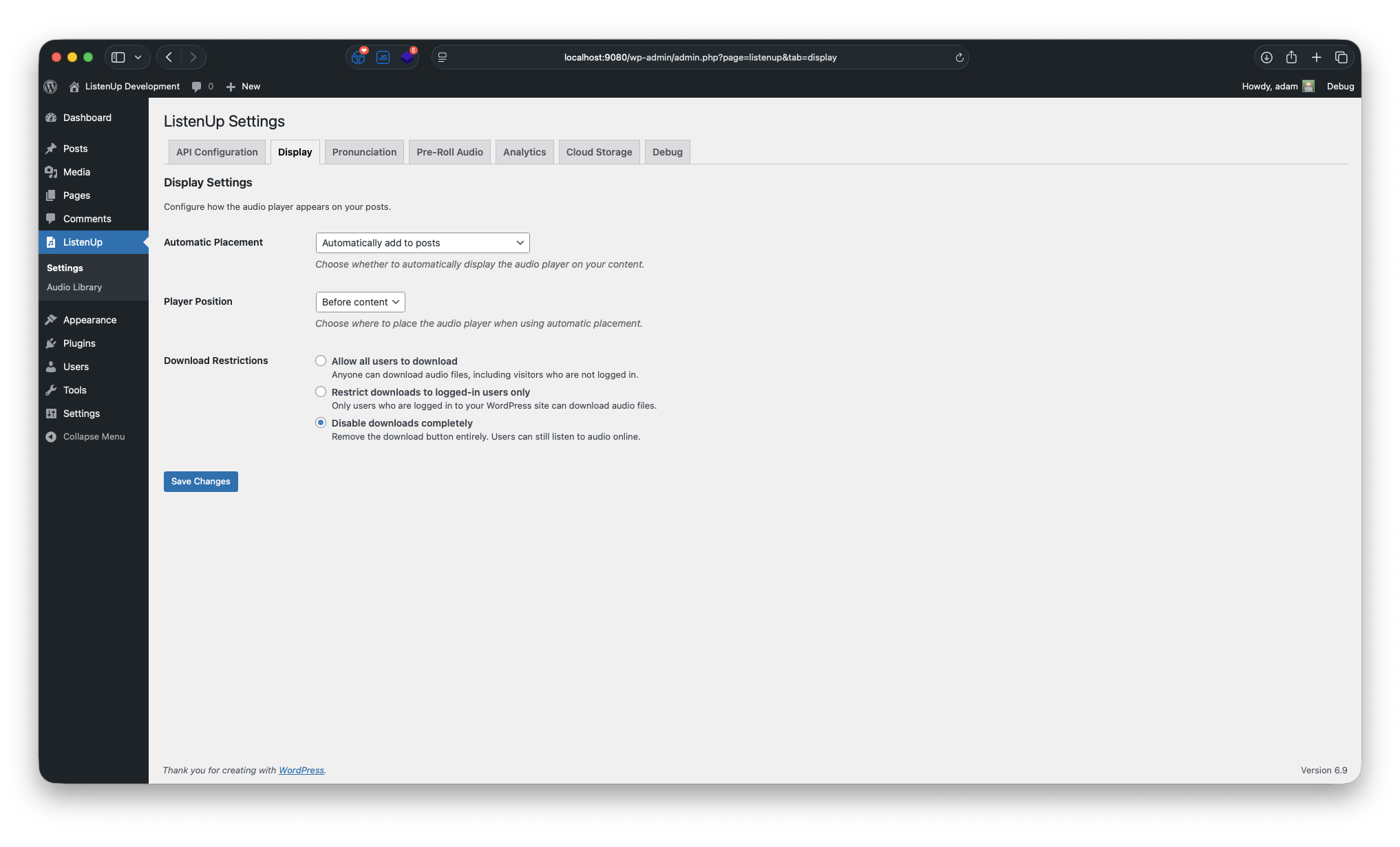 No FFmpeg Dependency: Unlike many audio plugins, ListenUp doesn’t require FFmpeg, making it perfect for shared hosting environments, managed WordPress hosts, or any situation where FFmpeg is not available or restricted.