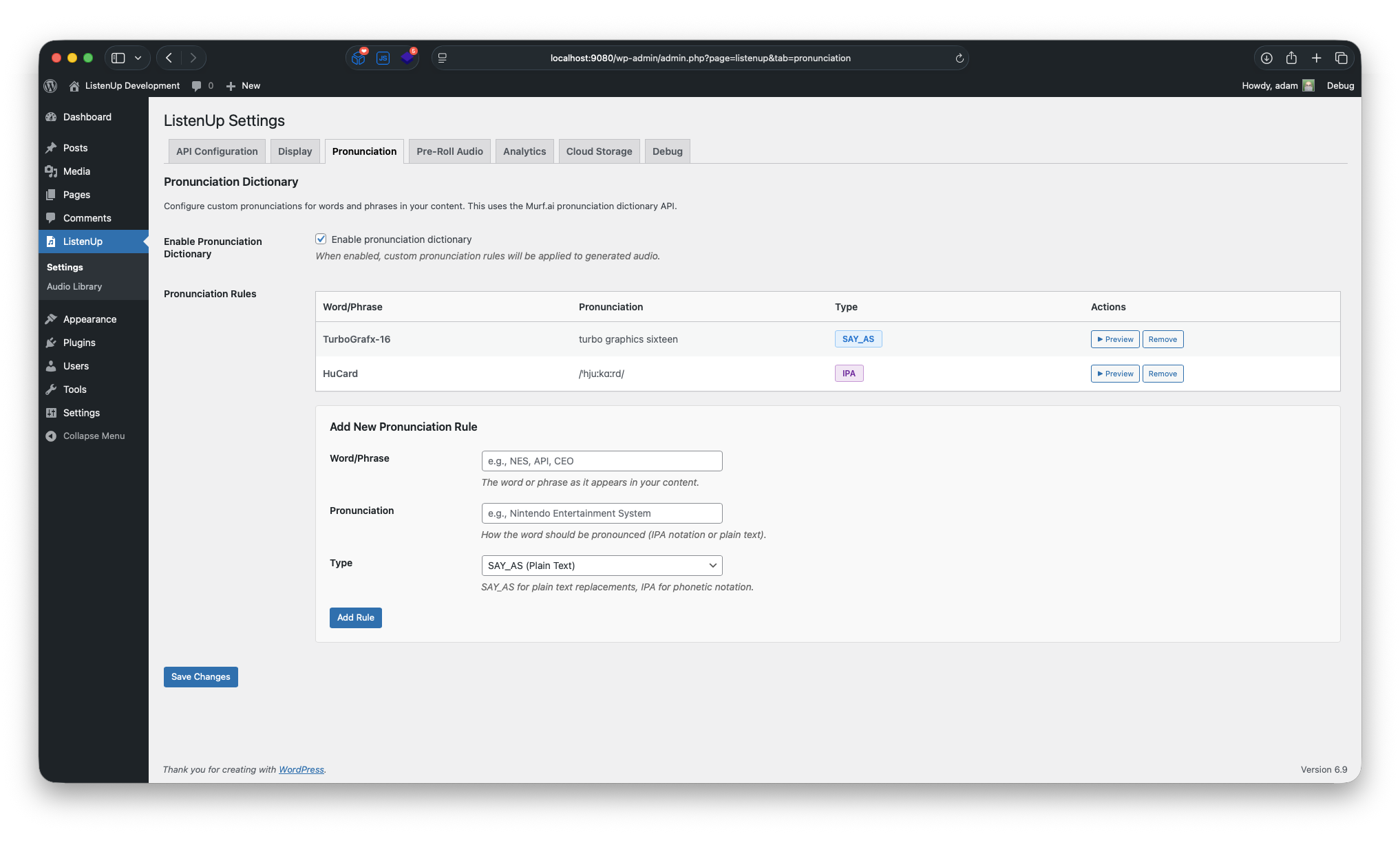 • Added “pronunciation” feature to plugin settings to specify how certain words should be spoken